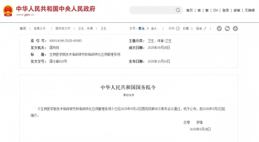 政策法规 | 李强签署国务院令 公布《生物医学新技术临床研究和临床转化应用管理条例》