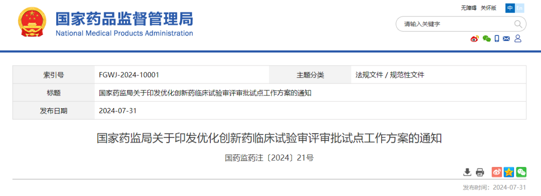为落实党中央、国务院关于加快发展新质生产力的工作部署,持续深化药品审评审批制度改革,提升药品审评审批效能,支持创新药研发,国家药监局决定开展优化创新药临床试验审评审批改革试点,特制定本工作方案。