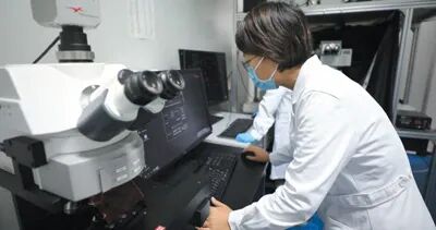 天津细胞生态海河实验室科研人员在做染色体分析实验。-何美瞳摄