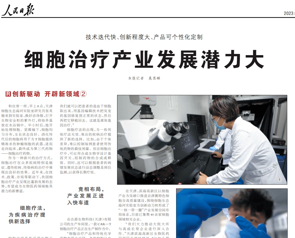 人民日报:细胞治疗产业发展潜力大