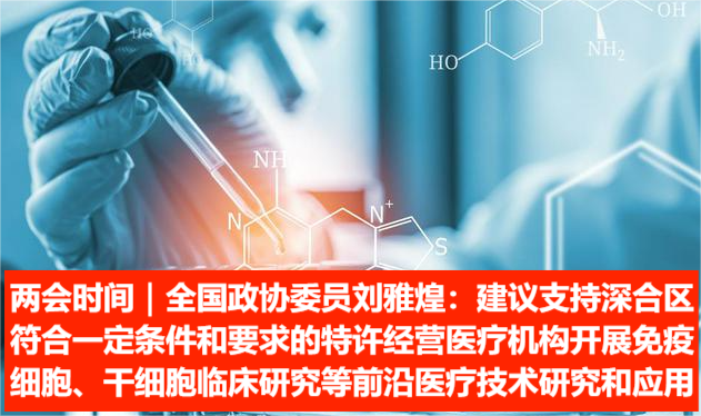 全国政协委员刘雅煌:建议支持符合条件的特许经营医疗机构开展免疫细胞、干细胞临床研究等前沿医疗技术研究和应用