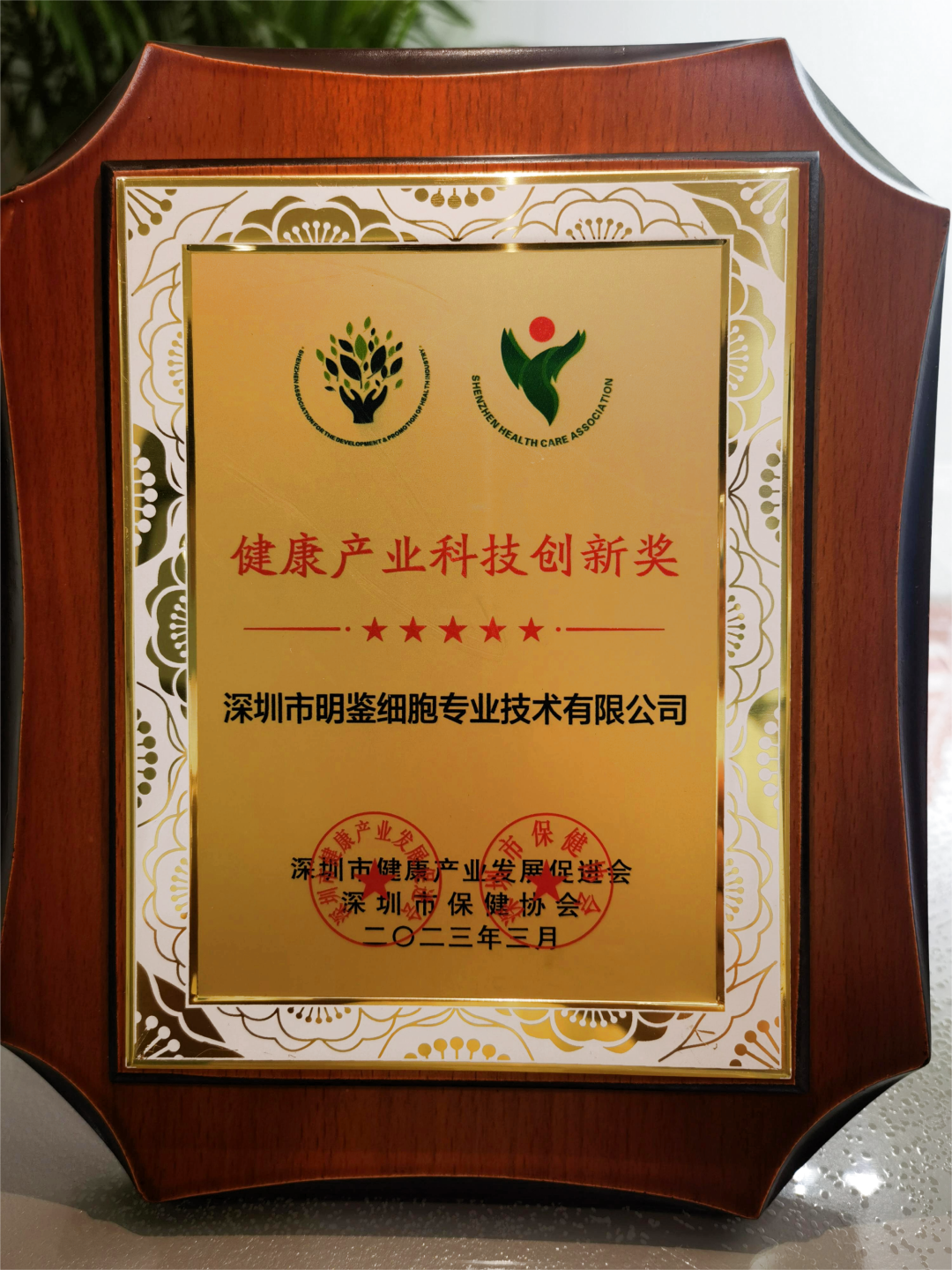 在“2022年度深圳健康产业表彰”环节,明鉴细胞检测凭借在2022年展示出来的行业竞争力、科技创新、品牌建设、标准建设与社会责任感等综合实力,荣获“健康产业科技创新奖”。