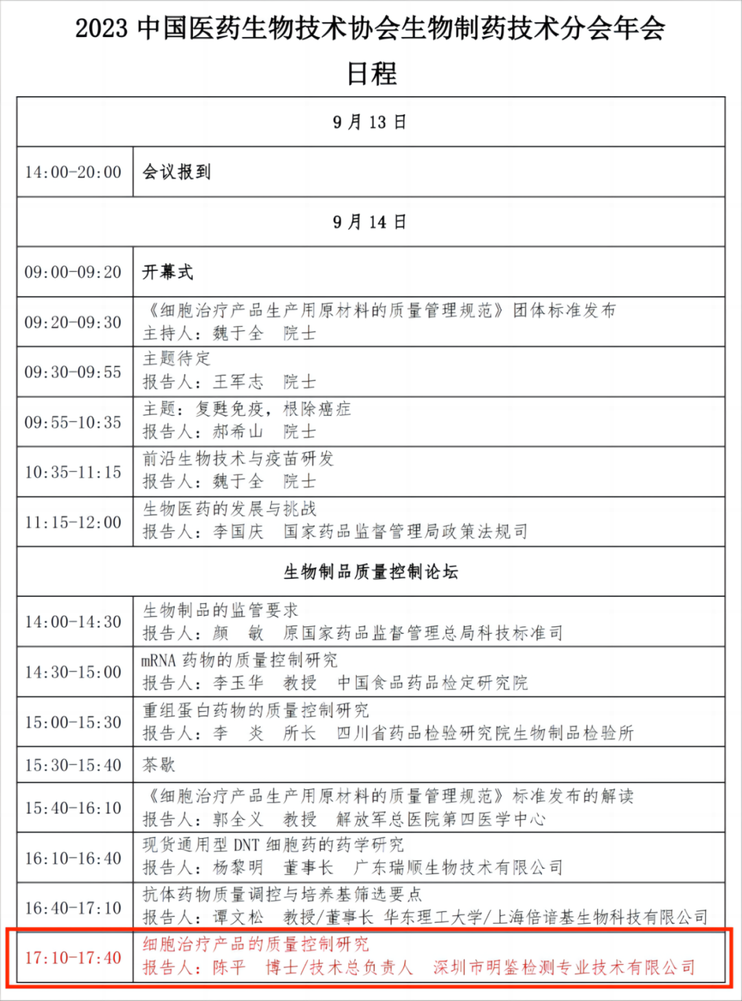 明鉴检测作为此次大会的受邀单位,我公司高级副总裁陈平博士将做题为“细胞治疗产品的质量控制研究”的主题演讲。明鉴检测在A7展位期待您的到来!