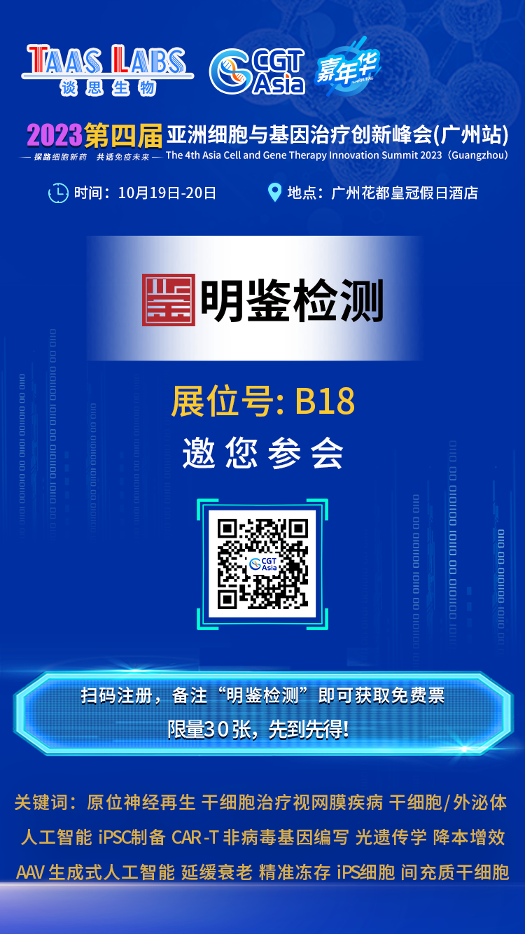 10月19-20日,明鉴检测邀您参加CGT Asia 2023第四届亚洲细胞与基因治疗创新峰会
