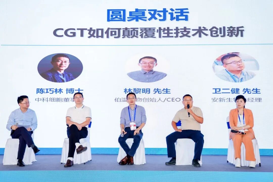 主题分享结束后,在细胞科技网CEO陈赞泉先生的主持下,进行议题为“CGT如何颠覆性技术创新”的圆桌对话。明鉴检测总裁罗晓玲女士,中科细胞董事长陈巧林博士、伯温生物创始人/CEO林黎明先生、安新生物总经理卫二健先生、围绕CGT领域展开对话与交流,分别从自身专业角度发表独到见解,共同探讨CGT发展新趋势、新技术、新进展,为CGT产业可持续发展出谋划策。