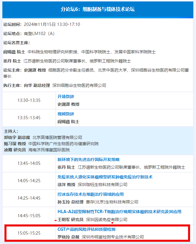同时,明鉴检测作为华南地区 首个双认证的生物制品一站式服务质量平台,也将亮相 会展中心8号馆(生物技术、高端医疗馆) 8-A01展台,为包括细胞与基因治疗产品、抗体类药物、疫苗等多种生物制品的生产与研发提供一站式质量解决方案,欢迎各位莅临展位交流合作。