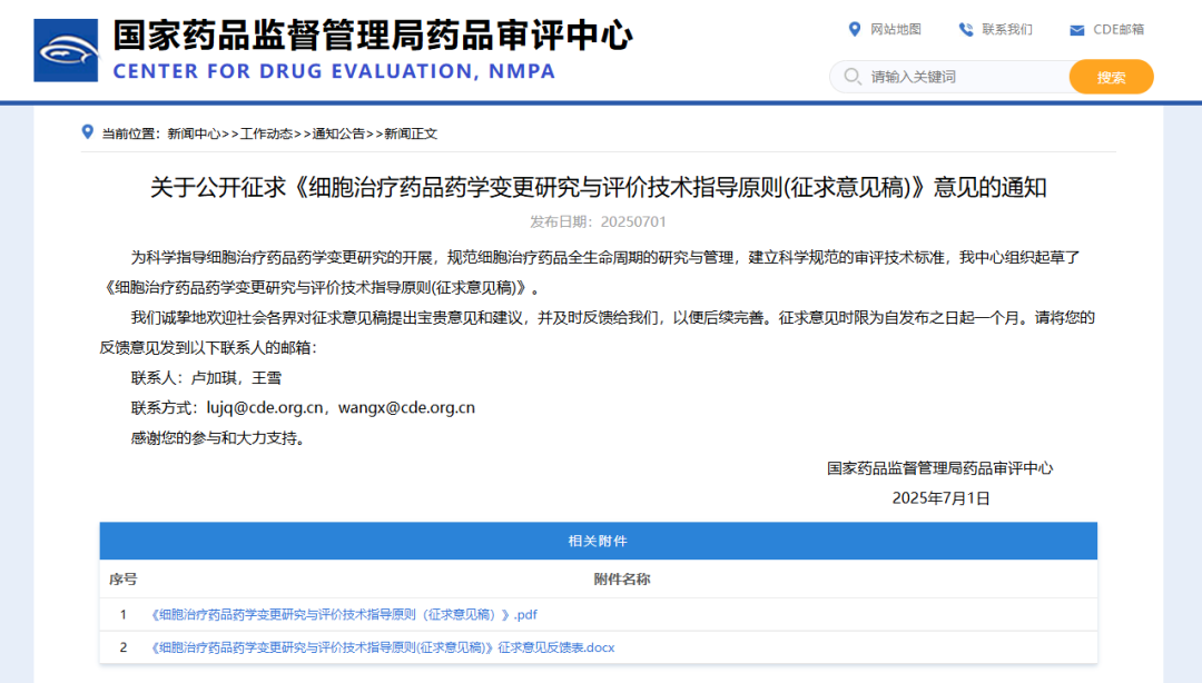 最新法规 | 国家药监局审评中心发布《细胞治疗药品药学变更研究与评价技术指导原则(征求意见稿)》