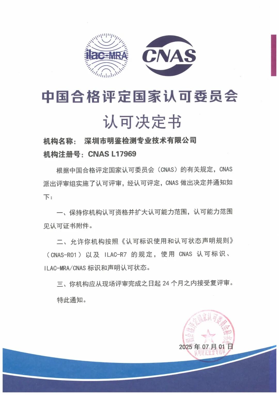 喜报 | 持续提升服务能力—明鉴检测再次顺利通过CNAS复评+扩项