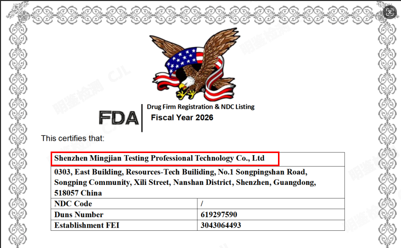 接轨国际监管标准,深圳明鉴FDA FEI Number申请顺利通过